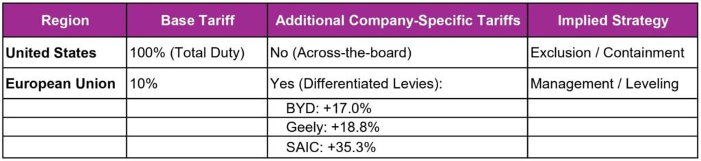 Table 2: International Tariff Responses to Chinese EV Exports (2024-2025)